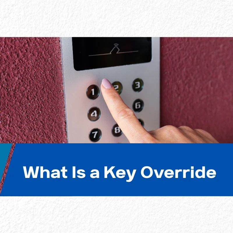 A key override is a physical backup that allows a lock to be opened manually by bypassing electronic or coded access. It is typically used for emergency situations, maintenance, or administrative access, ensuring businesses can regain entry quickly without disrupting operations or damaging the lock.